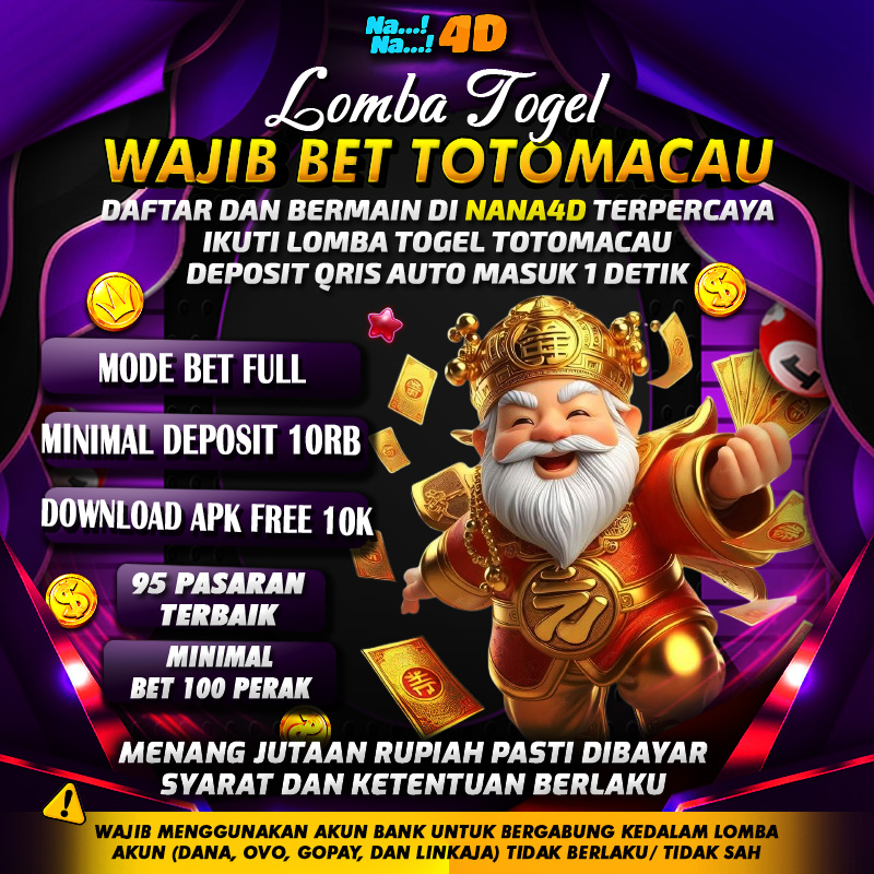 Lomba yang bisa anda ikuti juga sangat beragam seperti lomba tebak angka Hongkong Pools 3D 3 Line Wajib bet, lomba tebak angka Singapore Pools 3D 3 Line Wajib Bet, lomba tebak angka Sydney Pools 3D 3 Line wajib bet. Berikut ini merupakan syarat yang harus anda penuhi dan juga daftar hadiah yang bisa anda dapatkan jika mengikuti lomba togel yang ada di situs toto 4D NANA Group.
